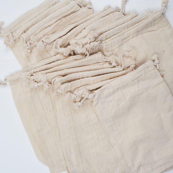 Cotton Muslin Drawstring Bags - 8" x 12" - Set of 19