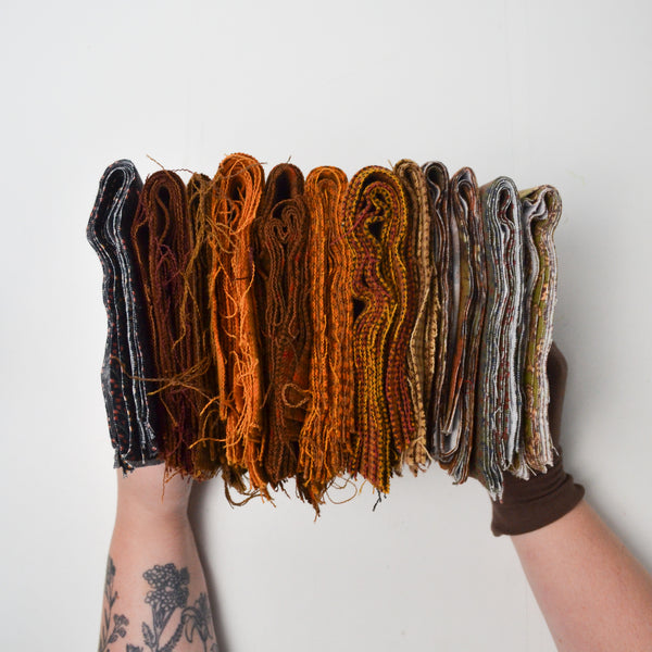 Orange + Brown Plaid + Nature Print Brushed Flannel + Woven Fabric Bundle
