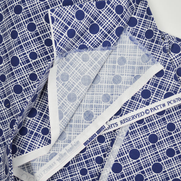 Navy + White Geometric Polka Dot Print Quilting Weight Woven Fabric - 42" x 90"