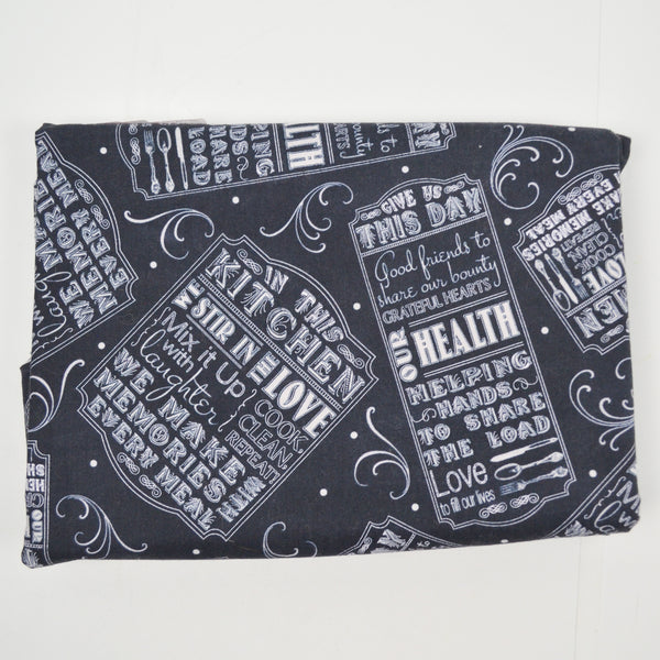 Black + White Kitchen Motivational Mantra Print Quilting Weight Woven Fabric - 42" x 112"