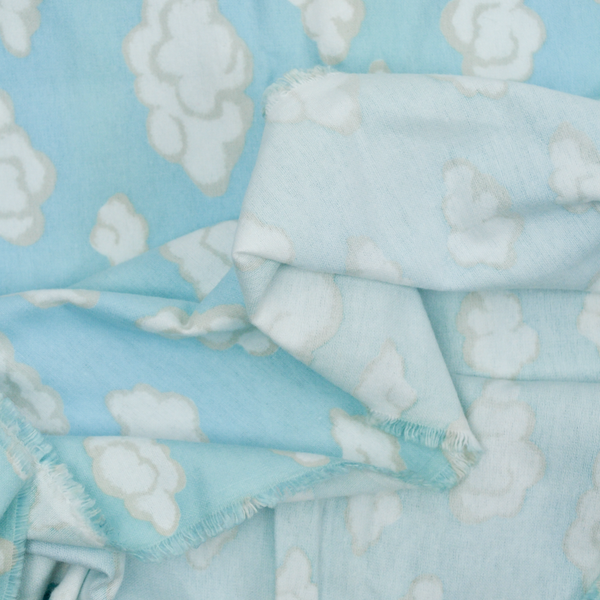 Light Blue + White Cloud Print Flannel Fabric - 46" x 152"