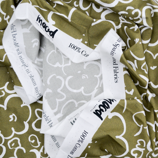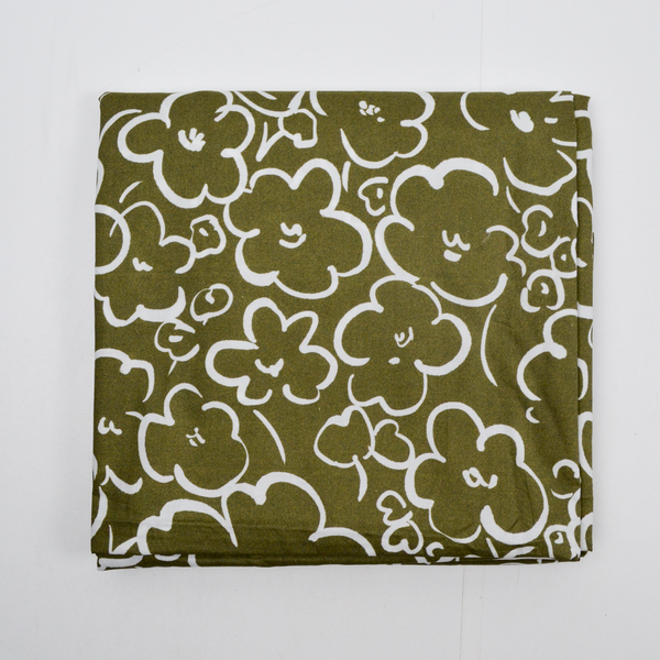 Olive Green + White Floral Print 100% Cotton Lightweight Woven Fabric - 57" x 112"