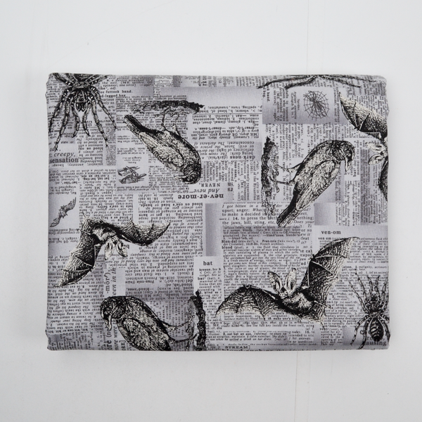 Black + White Spooky Animal + Definitions Print Quilting Weight Woven Fabric - 44" x 148"