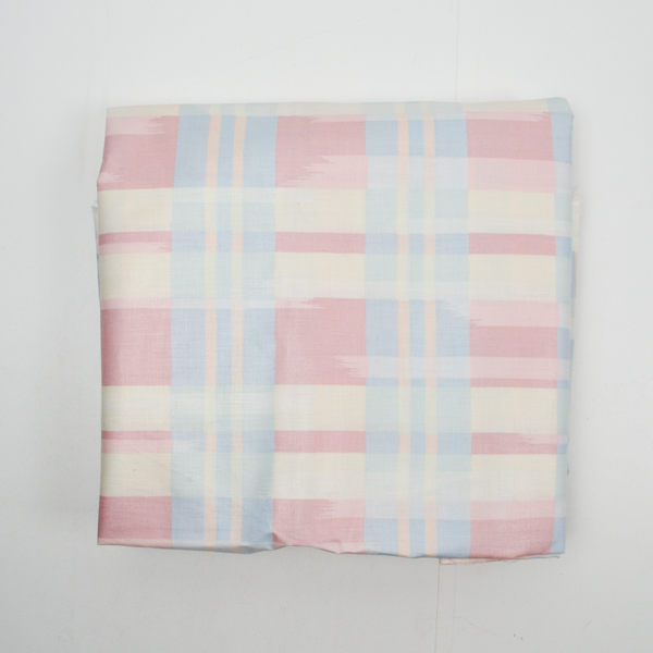 Pink, Blue + Off-White Plaid Stain Resist Coated Woven Drapery Fabric - 57" x 168"