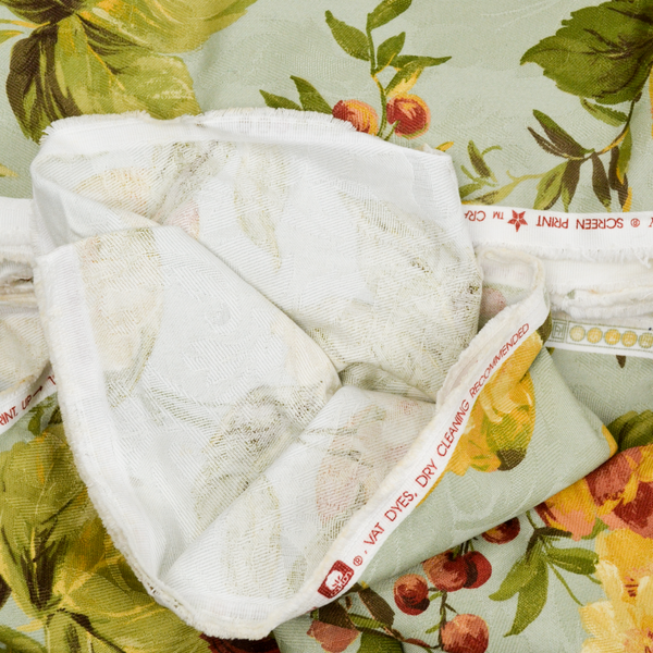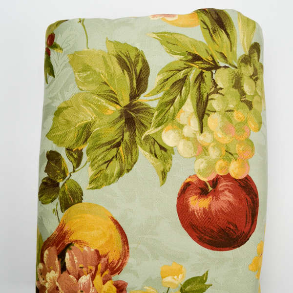 Green, Yellow + Red Fruit Print Floral Damask Woven Drapery Fabric - 57" x 336"