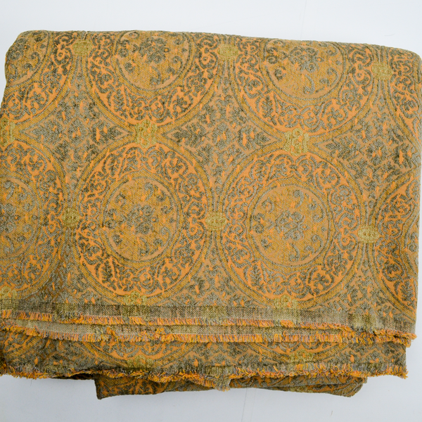 Orange + Gray-Green Chenille Brocade Pattern Woven Upholstery Fabric - 54" x 84" + Extra