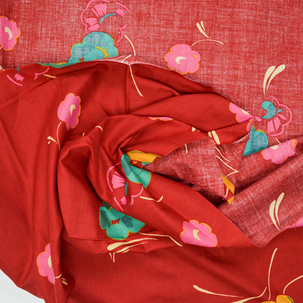 Red, Teal, Pink + Yellow Floral Print Woven Shirting Fabric - 40" x 180"