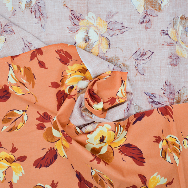 Orange Autumnal Floral Print Woven Shirting Fabric - 40" x 70"