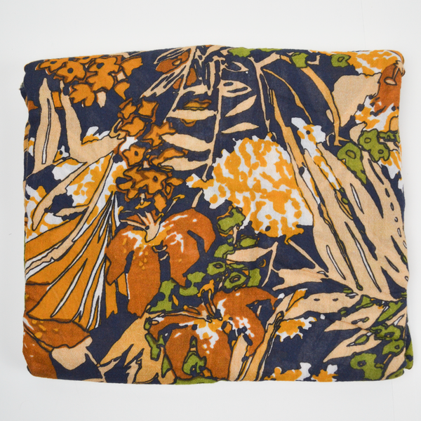 Navy, Orange + Green Floral Print Gauzy Crepe Woven Fabric - 56" x 144"