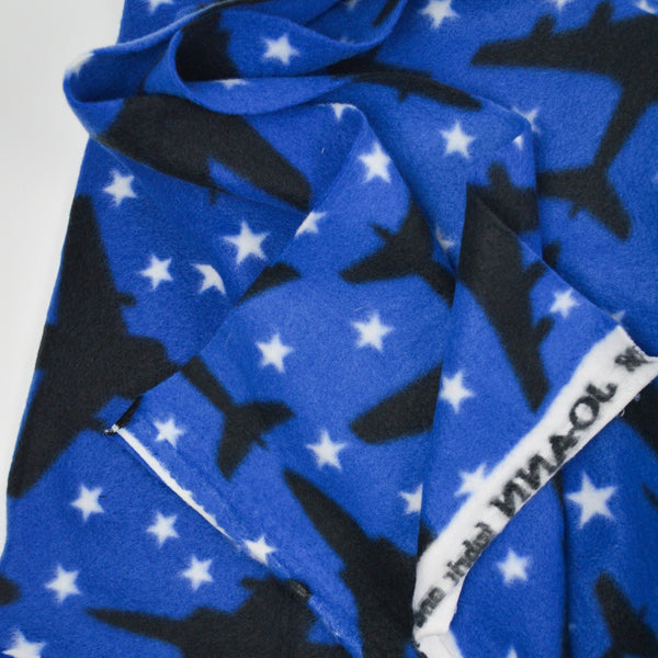 Blue + Black Patriotic Plane Print Fleece Fabric - 60" x 144"