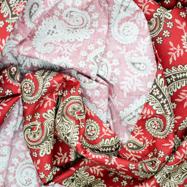 Red, White + Brown Paisley Print Curtain - 92" x 103"