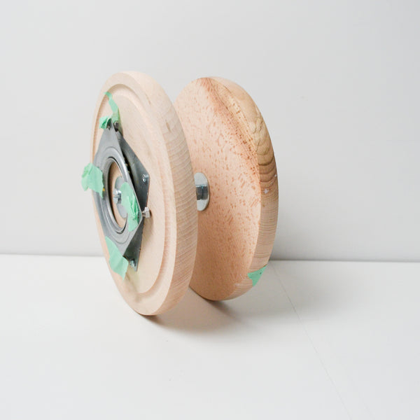 We don't know what this is or what it's for! The center post is a large threaded screw, but it also has a mount with ball bearings on the bottom