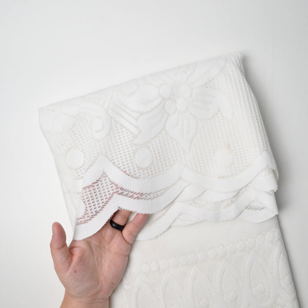 White Floral Net Lace Tablecloth with Scalloped Edge - 52" x 72"