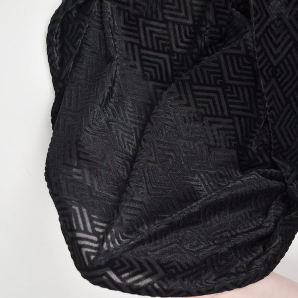 Black Geometric Burnout Velvet Knit Fabric - 64" x 82"