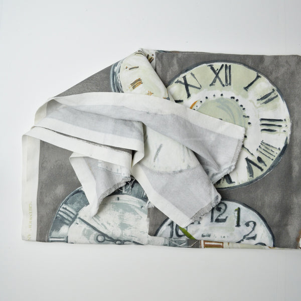 Gray Clock Printed Cotton Canvas Woven Fabric - 41" x 56"