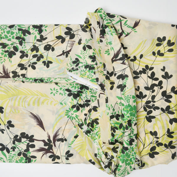 Off-White, Green + Black Leaf Printed Lightweight Woven Fabric - 56" x 204"