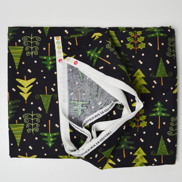 Black + Green Christmas Tree Print Quilting Weight Woven Fabric - 44" x 80"