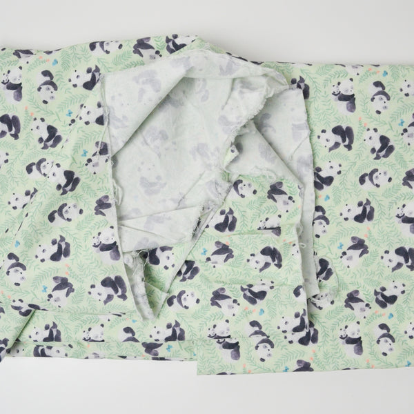 Pastel Green + Panda Print Quilting Weight Woven Fabric - 43" x 78"