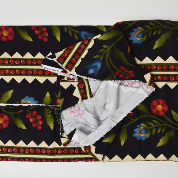 Black, Red + Green Floral Stencil Print Brushed Surface Flannel Woven Fabric - 44" x 54"