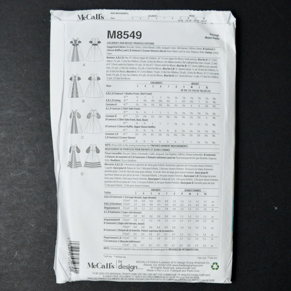 McCall's M8549 Children's and Misses' Princess Costume Sewing Pattern - Size AA (3-8)