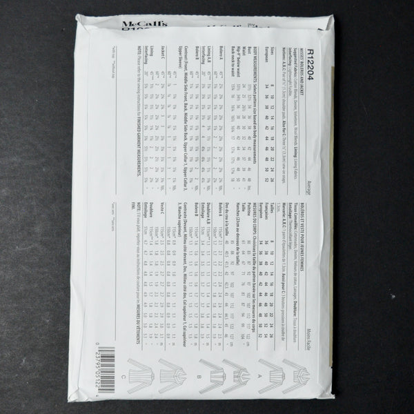 McCall's R12204 Misses' Boleros and Jacket Sewing Pattern - Size Y5 (18-26)