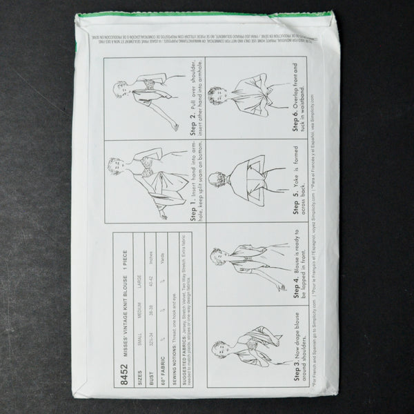 Simplicity 8452 Misses' Vintage Knit Blouse Sewing Pattern - Size A (S-L)