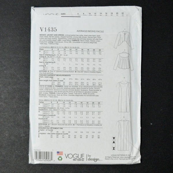 Vogue V1435 Misses' Jacket and Dress Sewing Pattern - Size A5 (6-14)