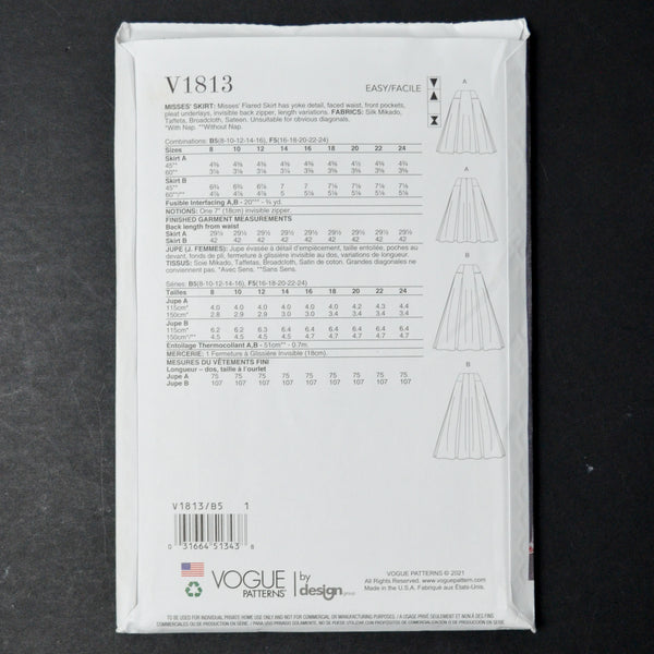 Vogue V1813 Misses' Skirt Sewing Pattern - Size B5 (8-16)