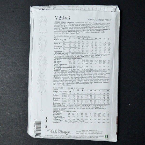 Vogue 2043 Misses' Dress and Belt Sewing Pattern - Size U5 (16-24)
