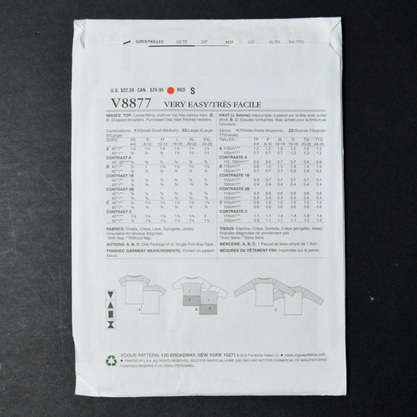 Vogue 8877 Misses' Top Sewing Pattern - Size Y (XS-M)