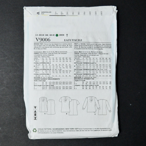 Vogue 9006 Misses' Top Sewing Pattern - Size B5 (8-16)