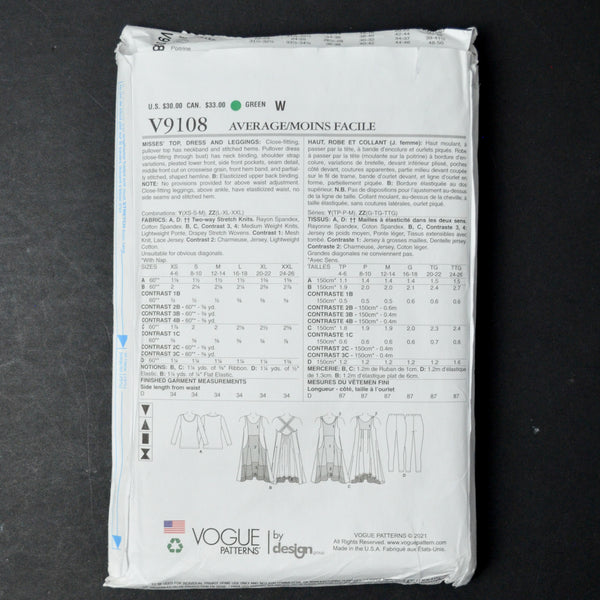 Vogue 9108 Misses' Top, Dress and Leggings Sewing Pattern - Size Y (XS-M)