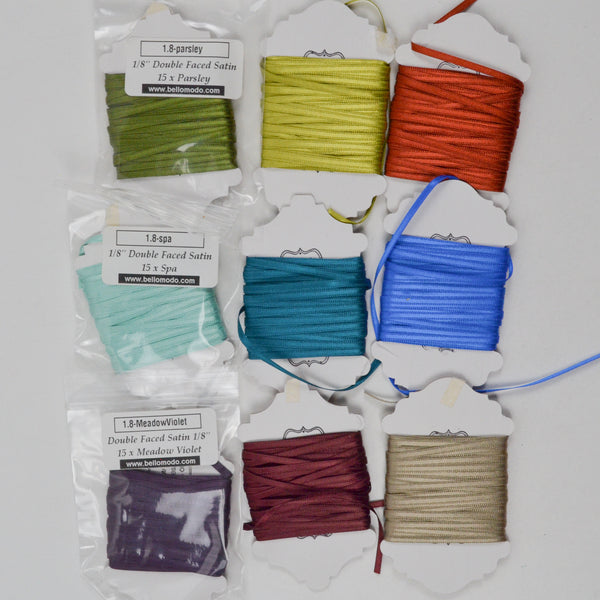 Jewel Tone Double-Faced Satin Ribbon for Embroidery - 9 Rolls