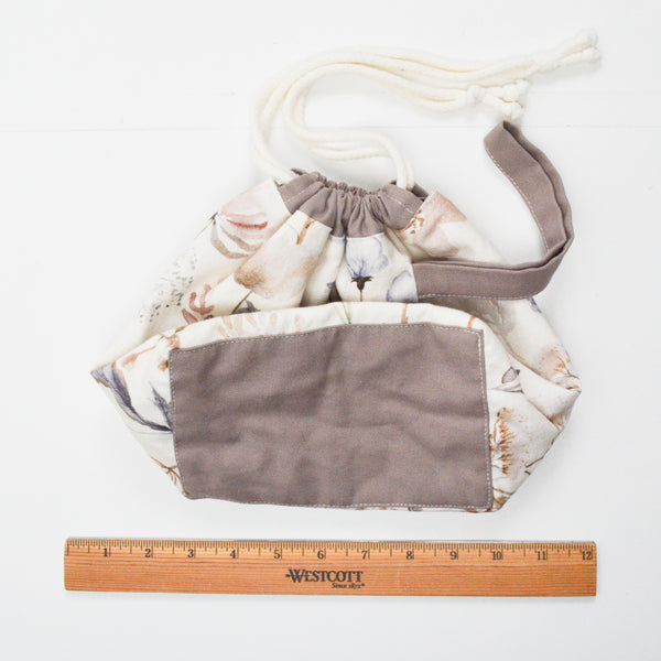 White + Brown Natural Print Handmade Knitting Project Bag