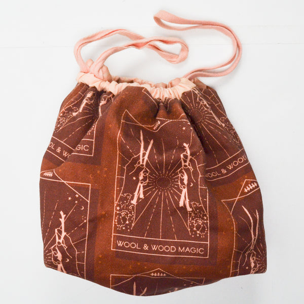 Brown Fiber Tarot Print Handmade Knitting Project Bag