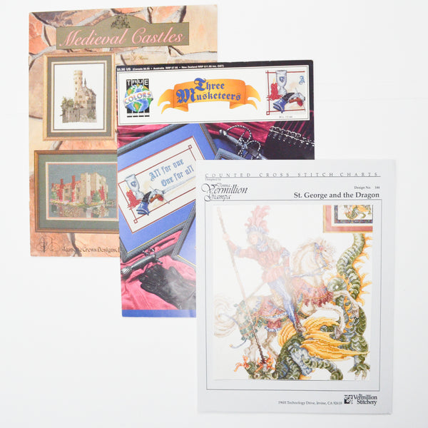 Medieval Castles, Three Musketeers + St. George and the Dragon Cross Stitch Pattern Booklets - Set of 3