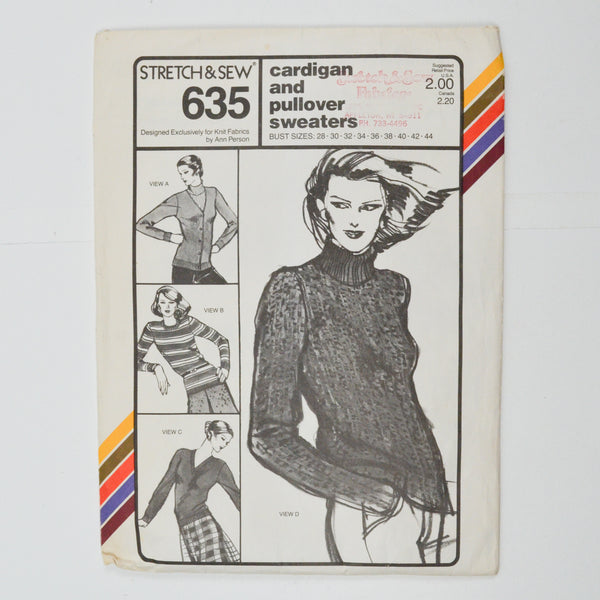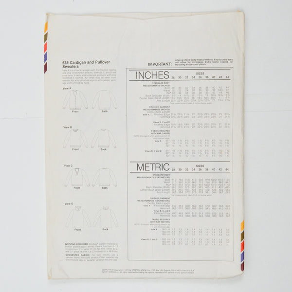 Stretch & Sew 635 Cardigan and Pullover Sweaters Sewing Pattern