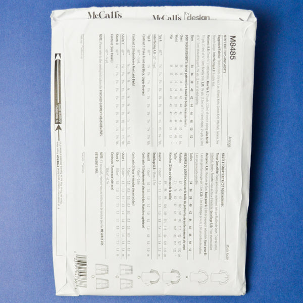 McCall's M8485 Men's Knit Tops + Shorts Sewing Pattern - Size BB (44-52)