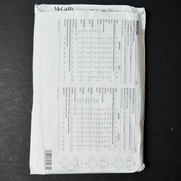 McCall's M8538 Children's and Girls' Capes Sewing Pattern - Size K5 (7-14)