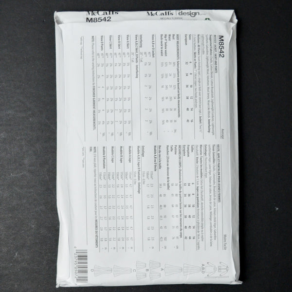 McCall's M8542 Misses' Jacket, Skirt and Pants Sewing Pattern - Size A (6-16)