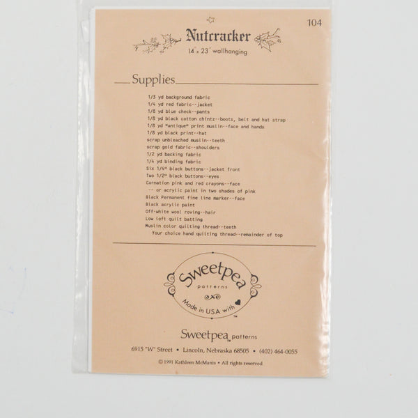 Sweetpea Nutcracker Wall Hanging Quilt Pattern - 14" x 23"