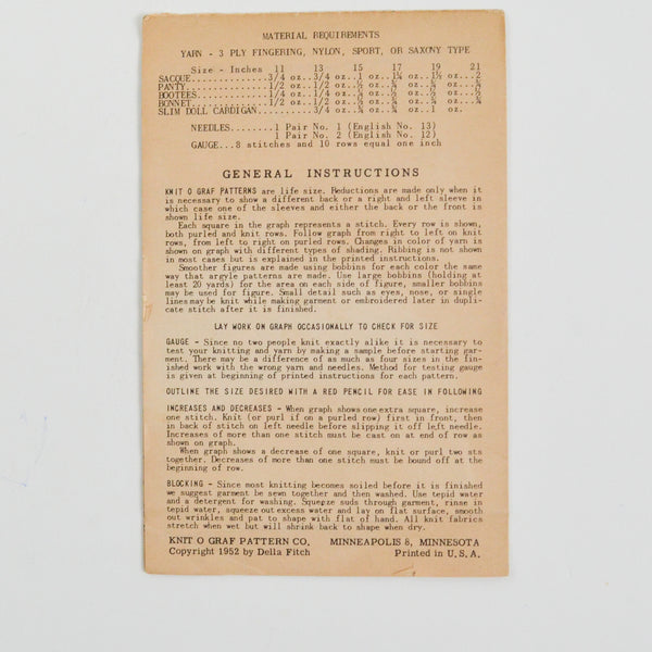 Knit O Graf Dolls Sacque, Bonnet, Panty and Bootees Knitting Pattern