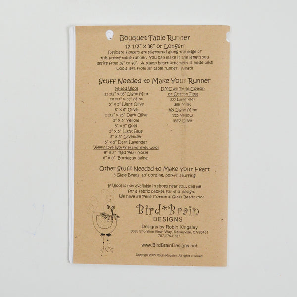 Bird Brain Designs Bouquet Table Runner Felted Wool Sewing Pattern