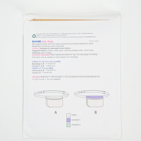 Kwik Sew K4165 Belly Bags Sewing Pattern