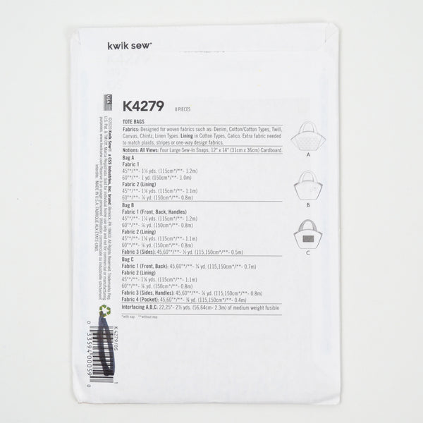 Kwik Sew K4279 Tote Bags Sewing Pattern
