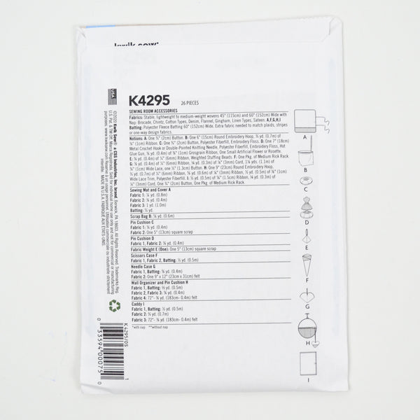 Kwik Sew K4295 Sewing Room Accessories Sewing Pattern