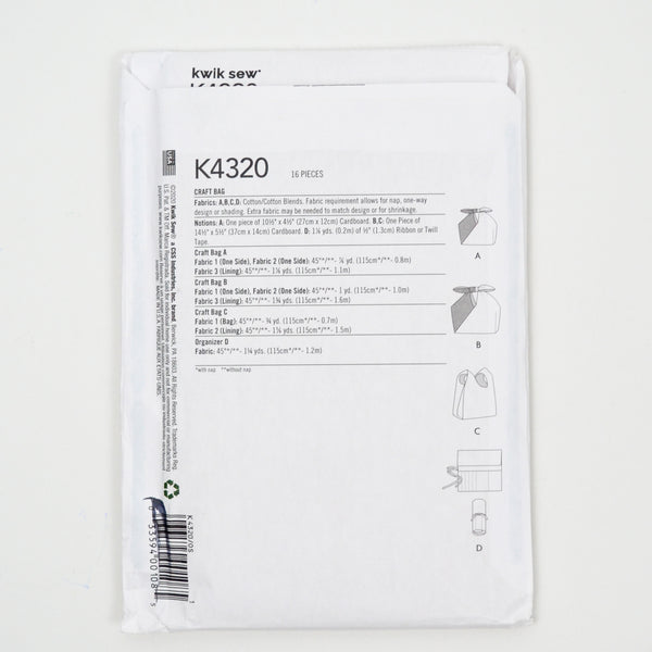 Kwik Sew K4320 Craft Bag Sewing Pattern