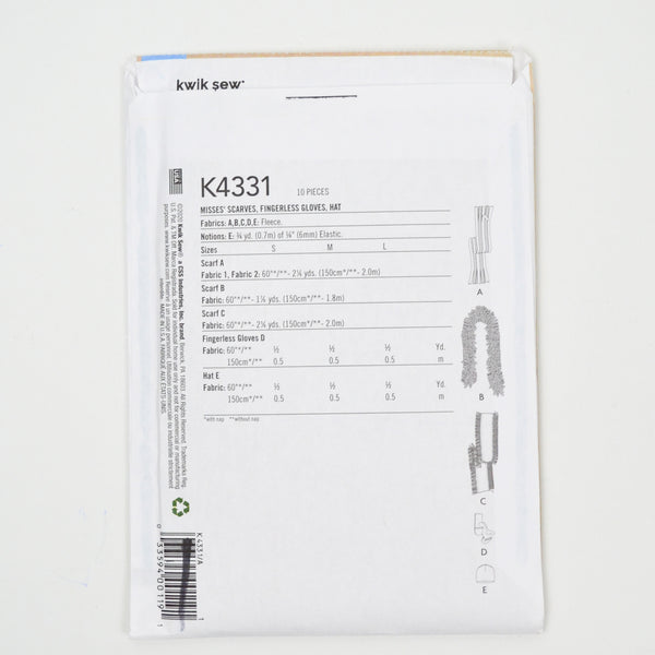 Kwik Sew K4331 Scarves, Fingerless Gloves, Hat Sewing Pattern