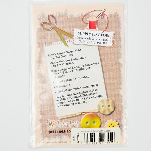 Turkey Track Designs 307 Super SImple Sweatsuit Jacket Sewing Pattern - Size S-XL