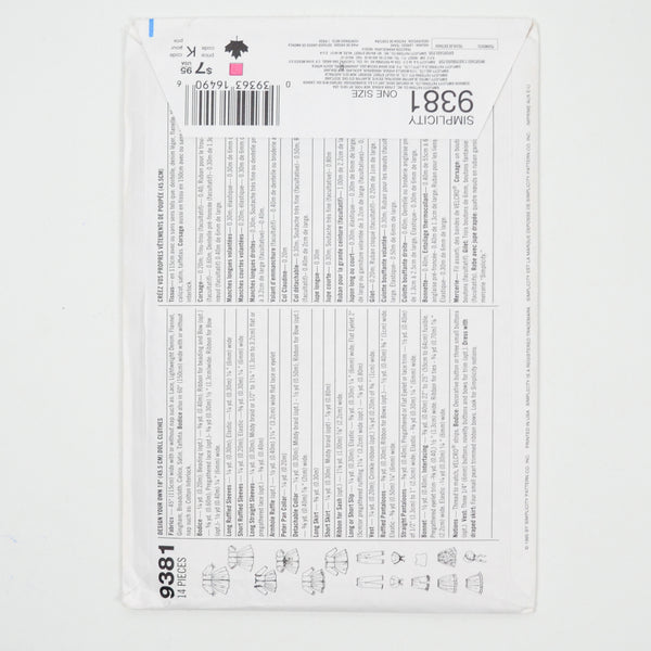 Simplicity 9381 Design Your Own 18" Doll Clothes Sewing Pattern